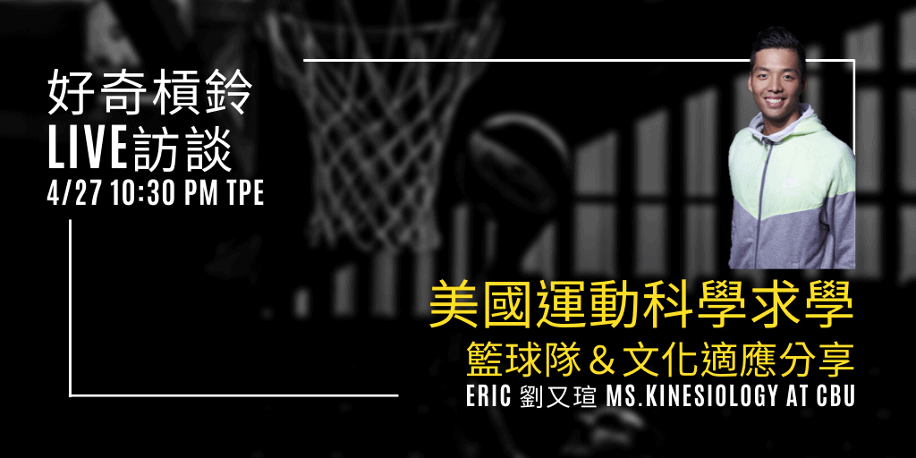 美國運動科學碩士、籃球隊&留學文化生活應分享 ft. Eric Liu描述4/27 22:30 (台北時間) 好奇槓鈴的主持人Angie將與正在念碩班的Eric Liu 進行線上LIVE訪談!