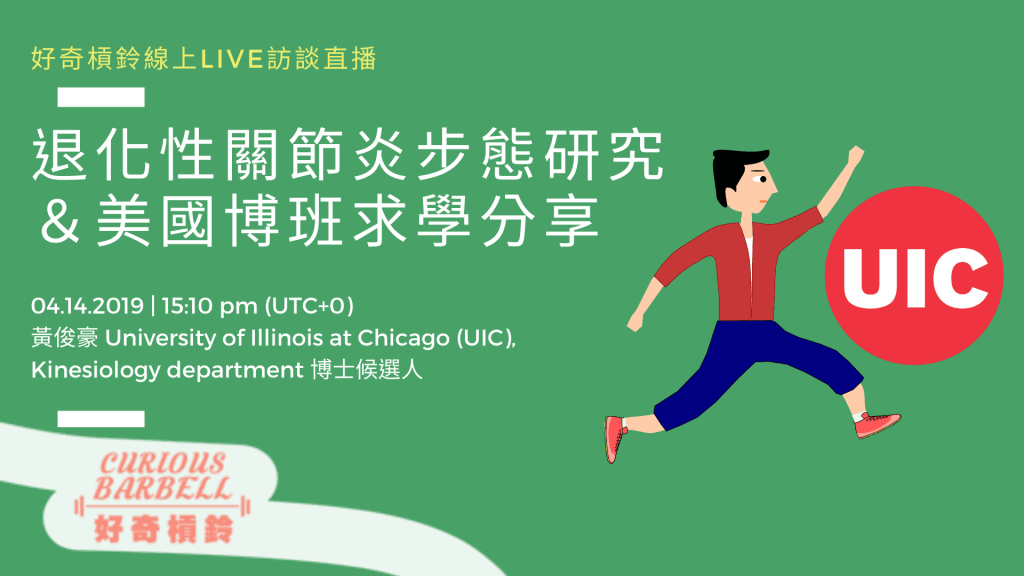 4/14 15:10 (UTC+0 時間;TPE 23:30) 好奇槓鈴將與正在University of Illinois at Chicago (UIC), Kinesiology department 念博班黃俊豪進行線上LIVE訪談!