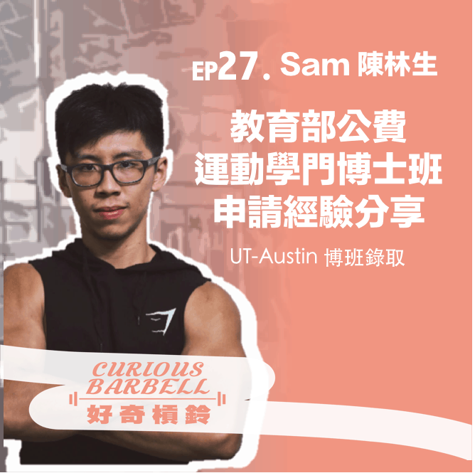 Sam Chen陳林生是台大運動設施與健康管理碩士學位學程畢業,今年暑假即將去美國UT-Austin攻讀運動生理博士,也是教育部公費留學獎學金-運動與健康學門的108獲獎者。Sam目前是研究助理兼持有ACSM-CPT證照的自由教練,自身的興趣為健美訓練。本集Sam 分享教育部運動與健康學門公費申請: